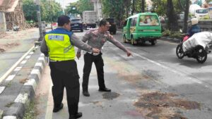 Unit Lantas Polsek Kenjeran segera tiba di lokasi untuk mengamankan arus lalu lintas yang sempat tersendat dan melakukan olah Tempat Kejadian Perkara (TKP).